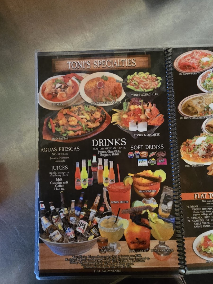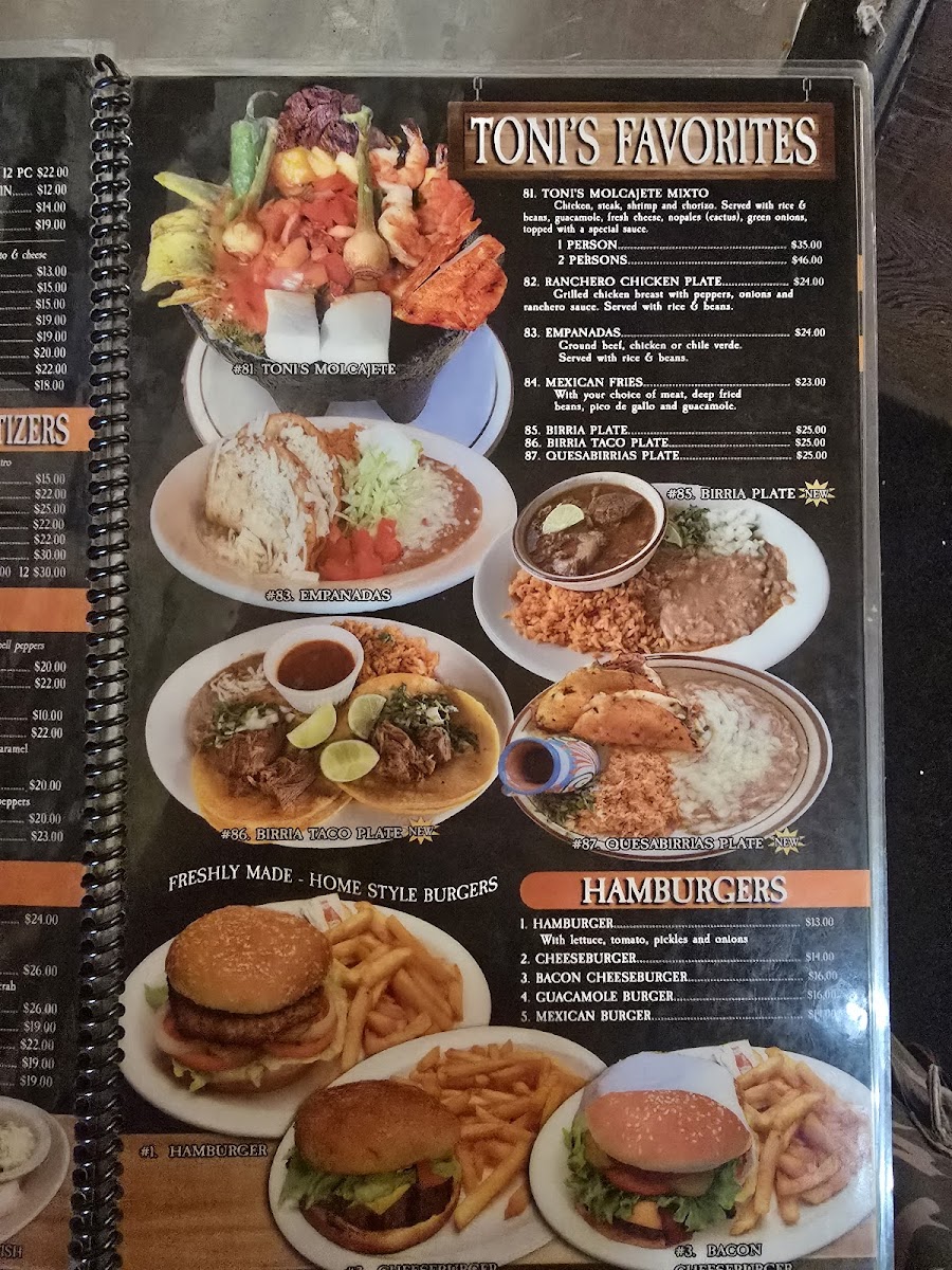 Welcome to Toni's Kitchen, a delightful Mexican haven located at 24194 Lake Dr, Crestline, CA. Renowned for its hearty portions and vibrant flavors, Toni's offers an extensive breakfast menu featuring favorites like the L. Omelette with spinach, mushrooms, and avocado, and the mouthwatering Breakfast Burrito loaded with bacon and sausage. The restaurant captivates with scenic views of Lake Gregory, making each meal an experience to cherish.
