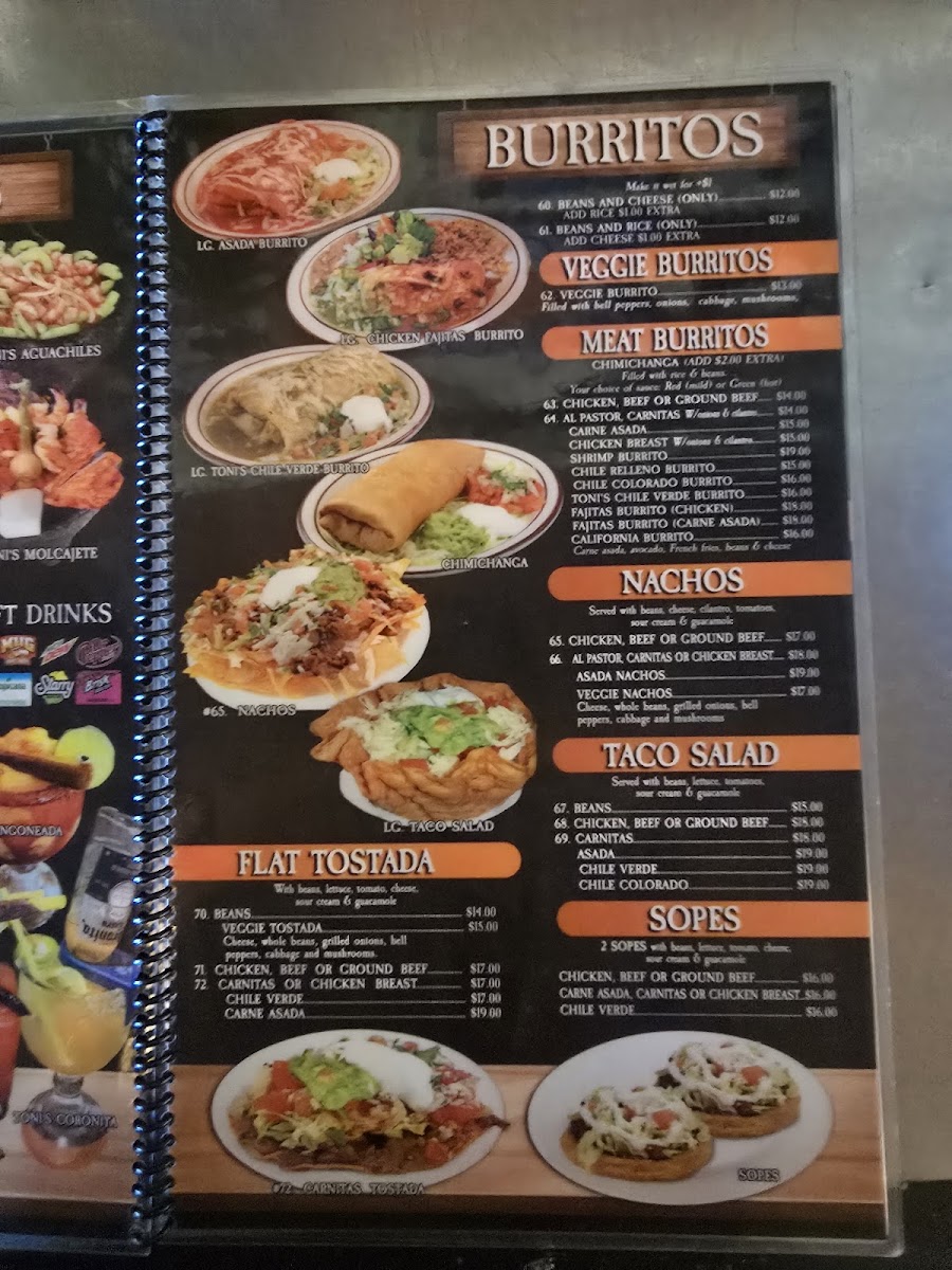 Patrons rave about the generous servings; a standout is the California Burrito, perfect for those hungry after a day of hiking. The welcoming atmosphere is complemented by friendly staff and lake views, providing an idyllic setting for dining. Despite some service hiccups, the food’s authenticity and portion sizes truly shine, ensuring diners leave satisfied. Whether you’re craving tacos, burritos, or refreshing drinks, Toni's Kitchen promises a memorable culinary journey amidst the mountains.